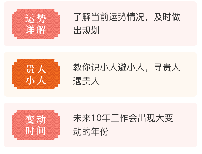 2、在您体验测算服务时,我们需要获取您的姓名和生辰命格(出生日期),为了保证数据准确性,我们建议您提供真实的个人信息,若您提供的信息有错误,会对测算结果的准确性造成偏差。我们保证您的所有个人信息除了用于生成测算数据以外,不会用于其他用途。